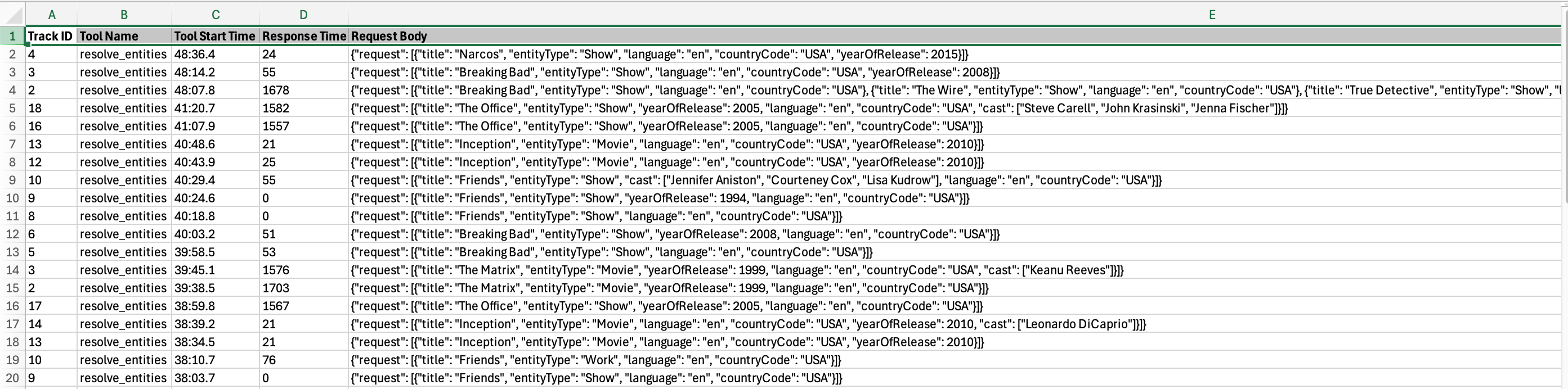 - Click the the Query Log download button. This downloads the detailed data CSV file similar to the image below.